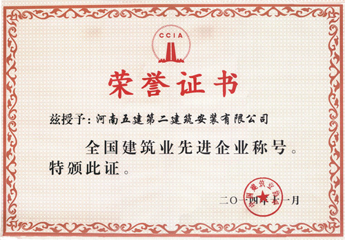 新中國成立以來,尤其是改革開放以來,我國建筑行業(yè)涌現(xiàn)出一大批先進(jìn)企業(yè)和優(yōu)秀企業(yè)家,為鼓勵(lì)這些先進(jìn)企業(yè)和個(gè)人進(jìn)一步發(fā)揮好標(biāo)桿引領(lǐng)和骨干帶頭作用,促進(jìn)行業(yè)整體素質(zhì)的提高,中國建筑業(yè)協(xié)會(huì)于2014年開展全國建筑業(yè)先進(jìn)企業(yè)和優(yōu)秀企業(yè)家表彰活動(dòng),重點(diǎn)總結(jié)宣傳“十一五”以來建筑業(yè)取得的輝煌業(yè)績。公司獲“全國建筑業(yè)先進(jìn)企業(yè)”稱號(hào),董事長、總經(jīng)理張書紅榮獲 “全國建筑業(yè)優(yōu)秀企業(yè)家”。