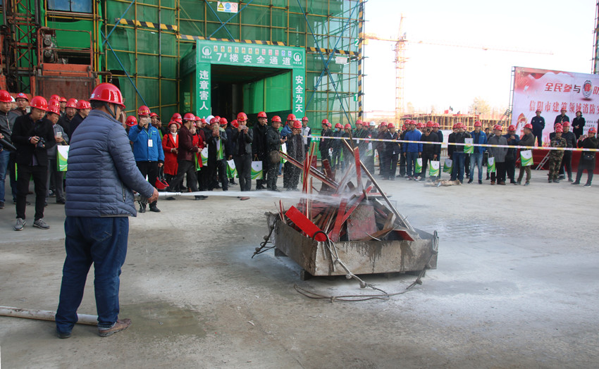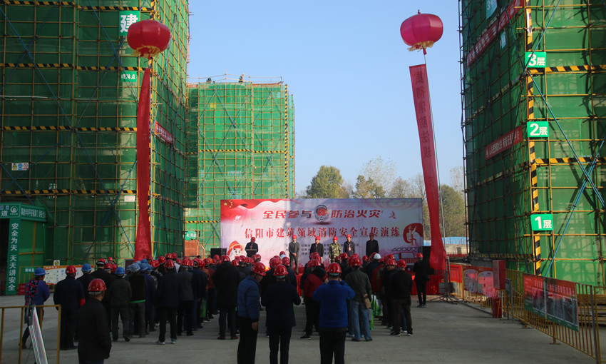 信陽(yáng)市建筑領(lǐng)域消防安全宣傳月暨現(xiàn)場(chǎng)培訓(xùn)活動(dòng)在我公司項(xiàng)目舉行