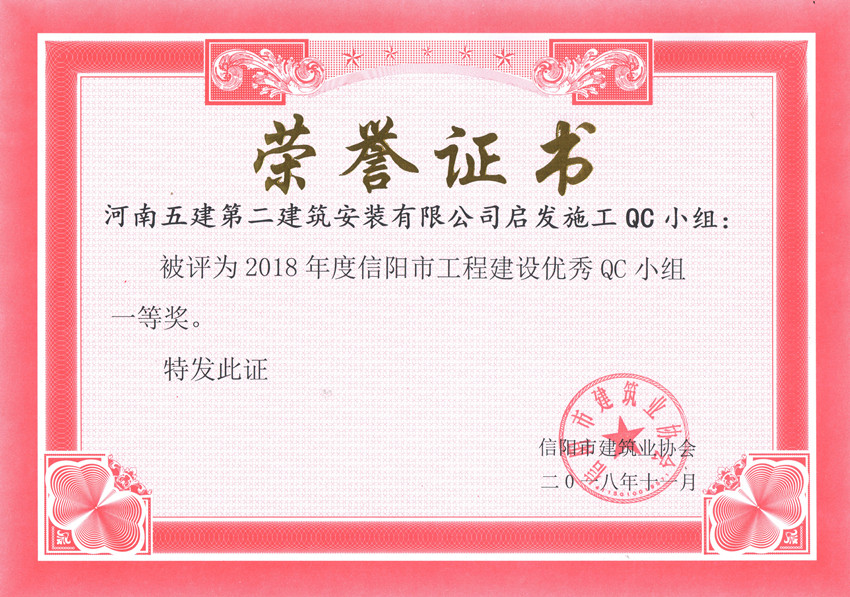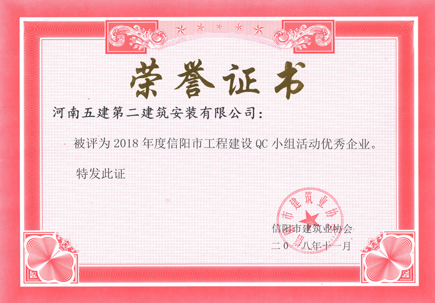 ▲公司被評為2018年度信陽市工程建設(shè)QC小組活動優(yōu)秀企業(yè)