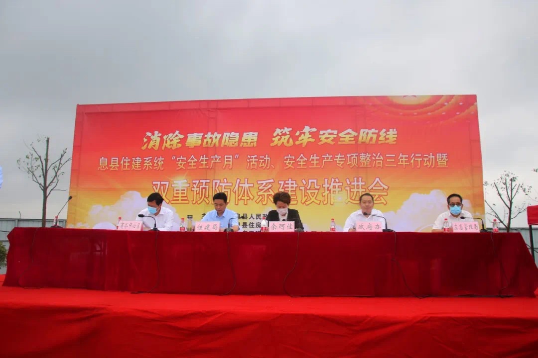6月18日,息縣建筑領(lǐng)域“安全生產(chǎn)月”活動(dòng)、安全生產(chǎn)專(zhuān)項(xiàng)整治三年行動(dòng)暨雙重預(yù)防體系建設(shè)推進(jìn)會(huì)在我公司承建的息縣紀(jì)委廉政教育基地項(xiàng)目順利召開(kāi),息縣人民政府副縣長(zhǎng)余珂佳、住建局黨組書(shū)記、局長(zhǎng)謝克剛、應(yīng)急管理局黨組書(shū)記、局長(zhǎng)盧峰參加會(huì)議,會(huì)議由縣政府辦副主任楊加宇主持。息縣相關(guān)單位負(fù)責(zé)人、縣城區(qū)三級(jí)以上(含三級(jí))房屋建筑施工企業(yè)主要負(fù)責(zé)人及縣城區(qū)在建房屋建筑工地項(xiàng)目經(jīng)理、項(xiàng)目總監(jiān)等一百六十余人參加了會(huì)議。