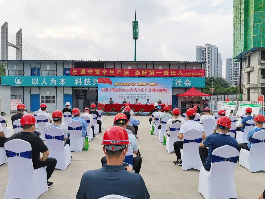 6月22日,信陽市浉河區(qū)2022年“安全生產(chǎn)月”現(xiàn)場觀摩會在公司第七項目部承建的信陽市浉河區(qū)城市有機(jī)更新安置區(qū)三里店片區(qū)建設(shè)項目順利舉行,浉河區(qū)住建局黨組成員、副局長熊國利、監(jiān)管股股長秦宏偉、安監(jiān)站黨組書記馬俊、站長朱偉以及轄區(qū)內(nèi)建筑施工企業(yè)安全負(fù)責(zé)人、在建項目經(jīng)理、項目安全負(fù)責(zé)人參加會議。公司副總經(jīng)理吳建功出席活動并講話。